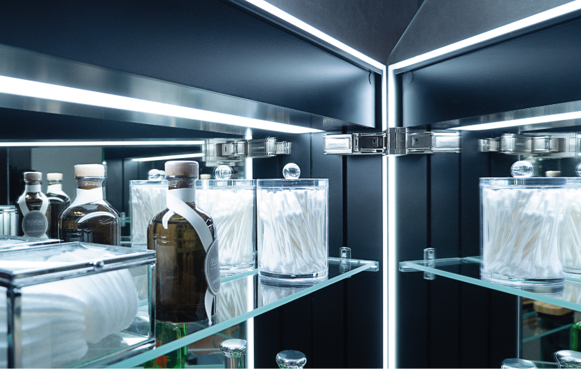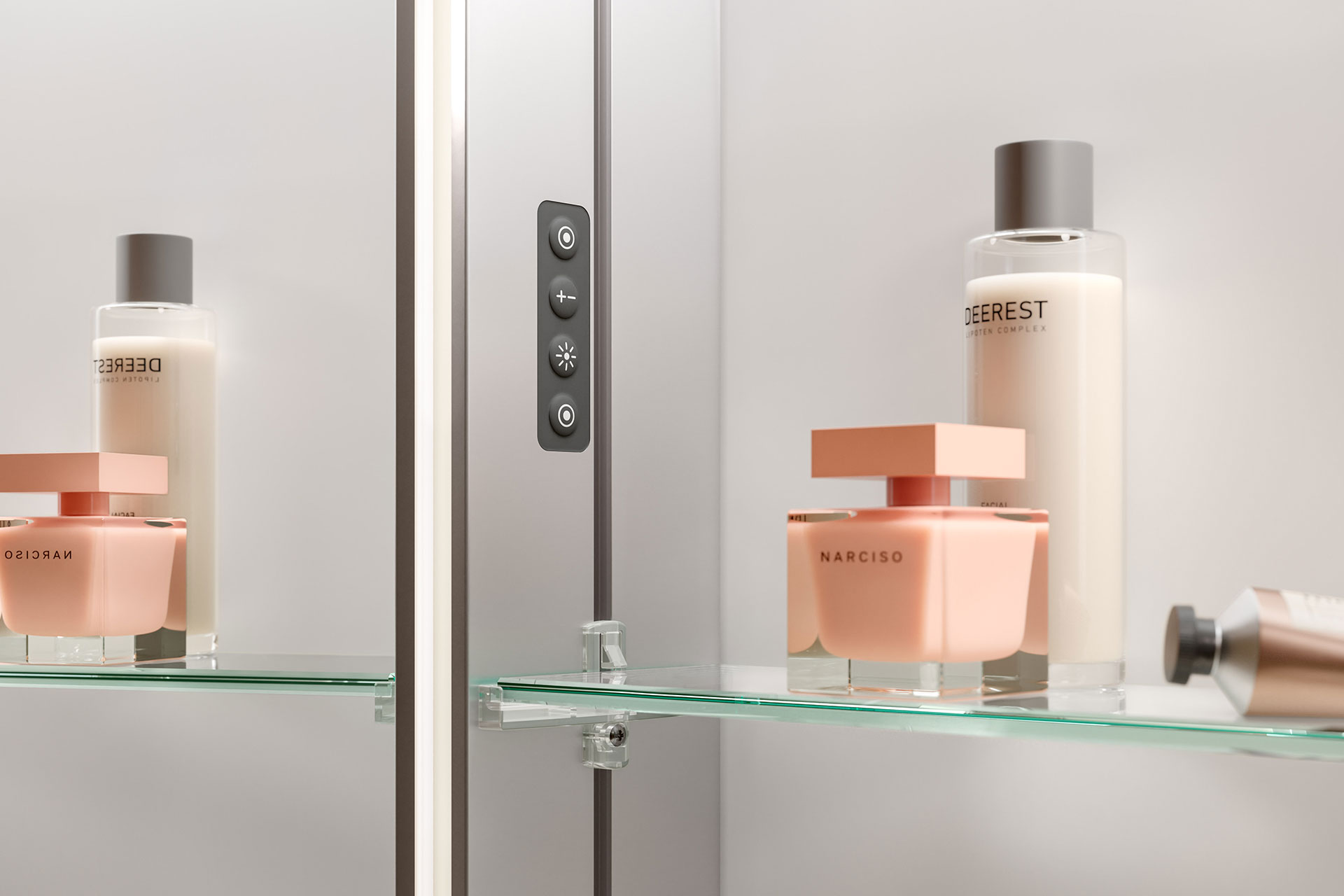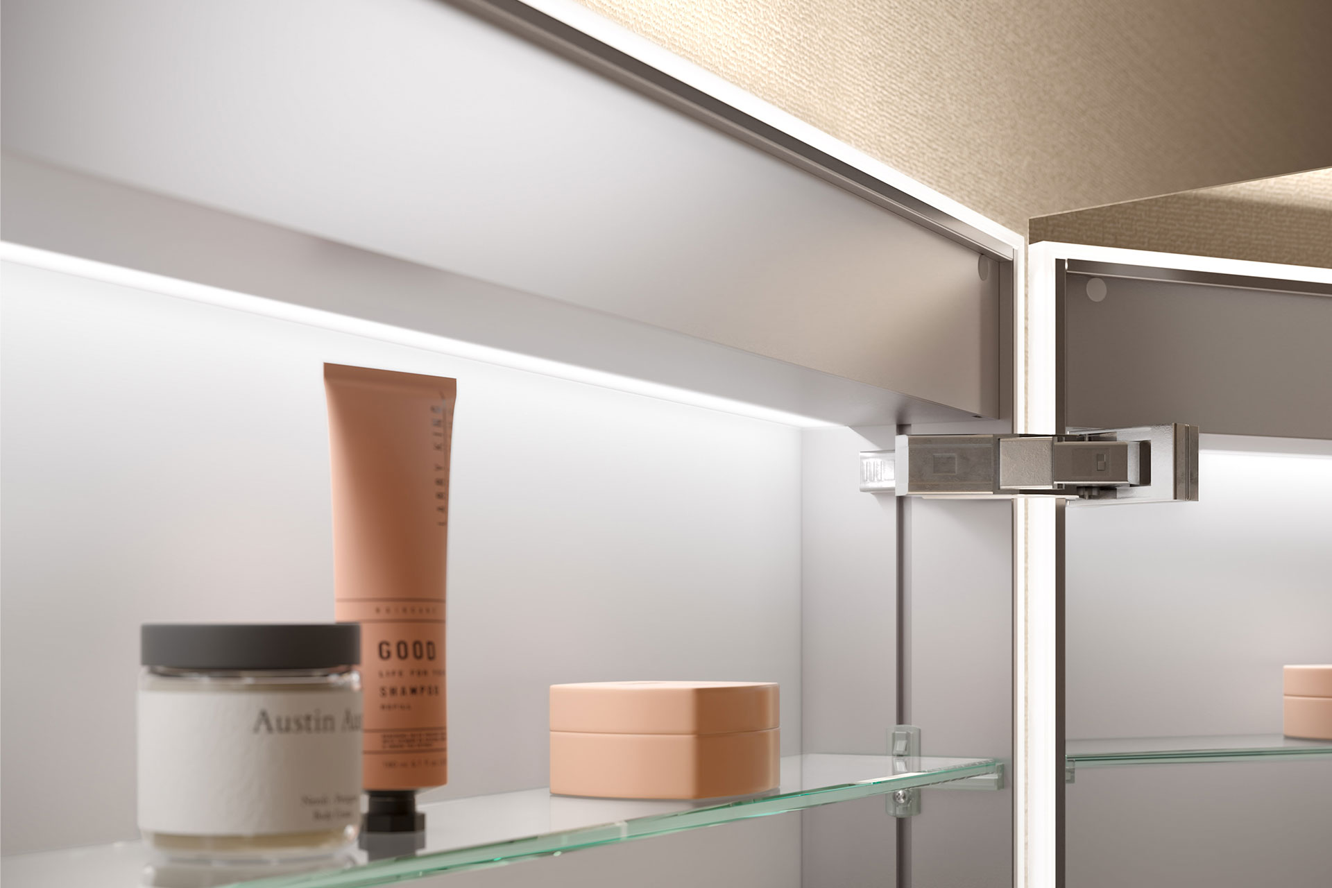 Der Spiegelschrank lässt sich in die Wand einbauen und steht weniger vor. - Stufenlose Glasablage