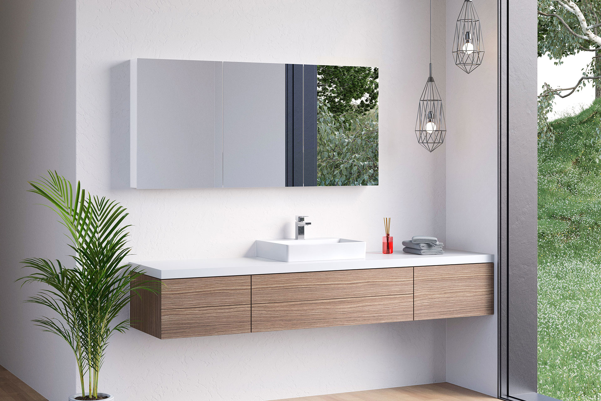 Der Spiegelschrank lässt sich in die Wand einbauen und steht weniger vor. - Stufenlose Glasablage