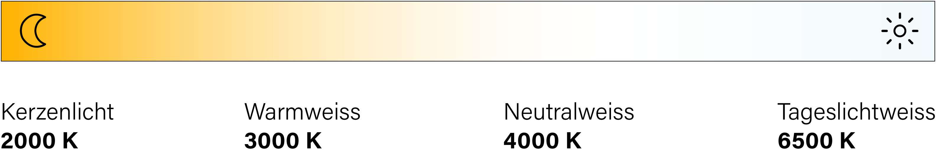 Die Lichtfarbe lässt sich messen und wird als Farbtemperatur in Kelvin (K) angegeben: