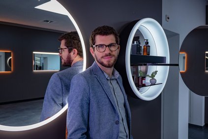 Martin Rüegg, directeur Développement, présente les nouveautés de l'application Schneider Ambient Lighting, qui permet de commander une sélection d'armoires-miroirs et de miroirs lumineux Schneider.