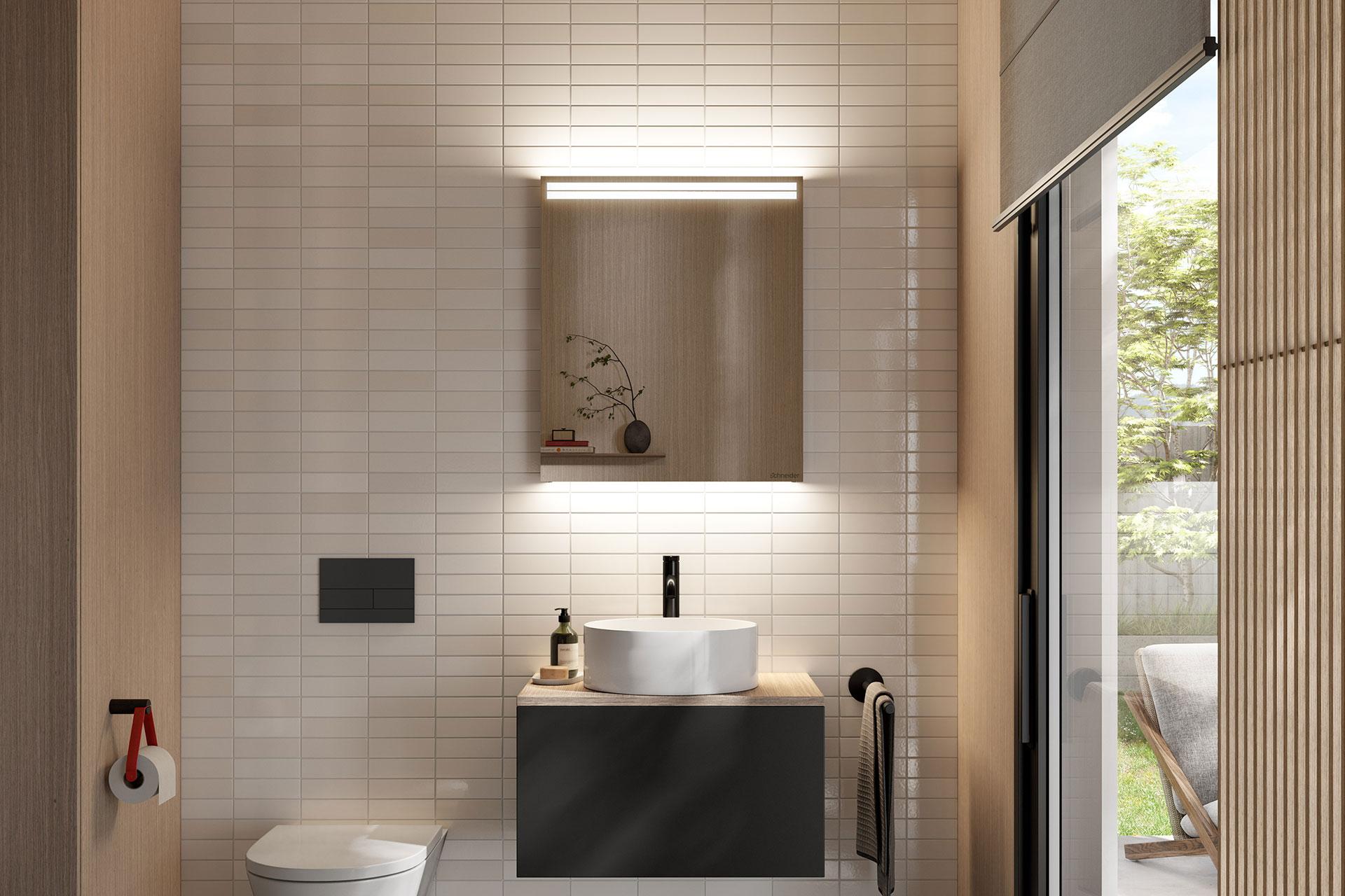 La lumière rayonne vers la personne qui se mire et illumine le visage. - Source de lumière indirecte