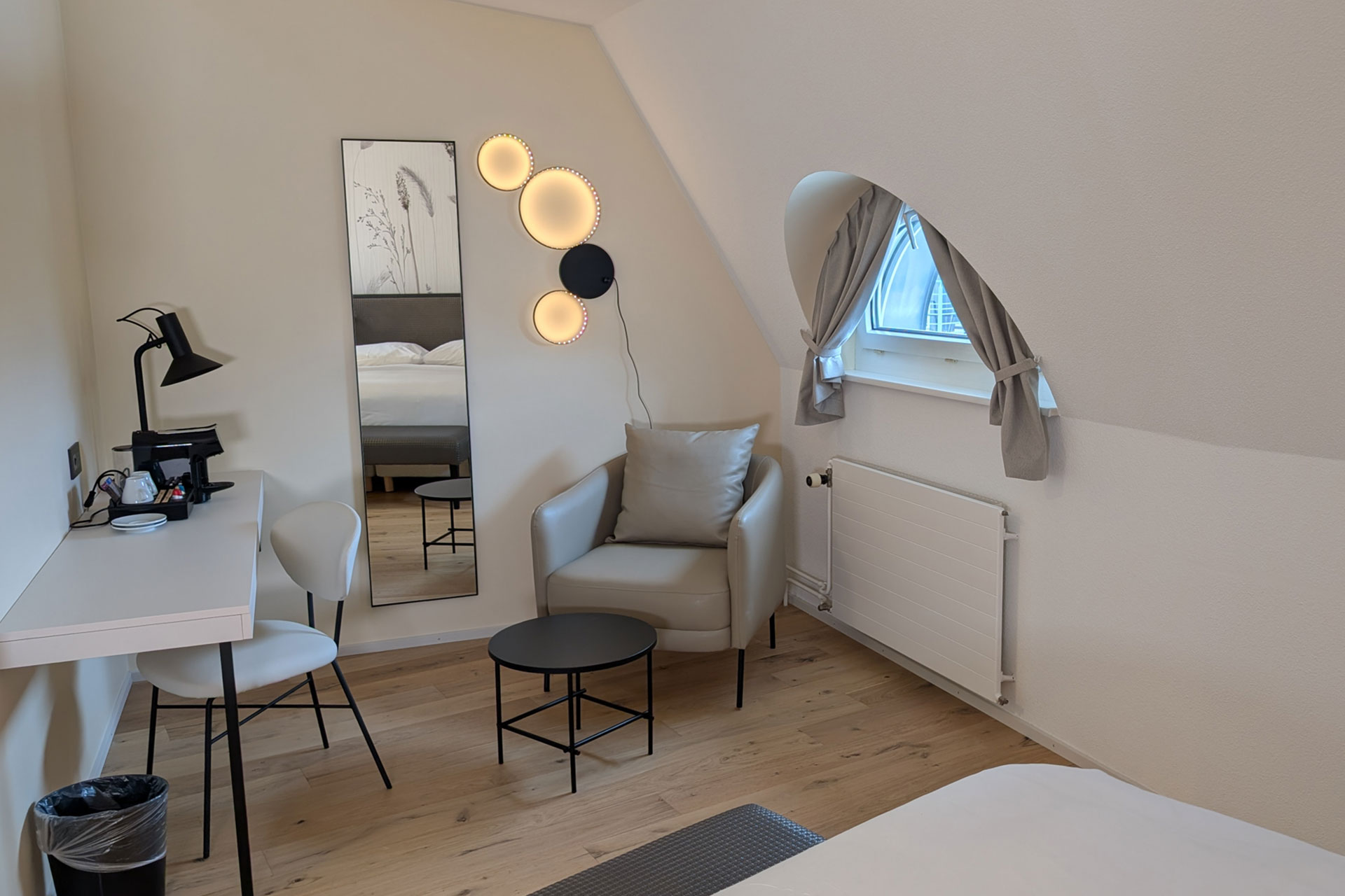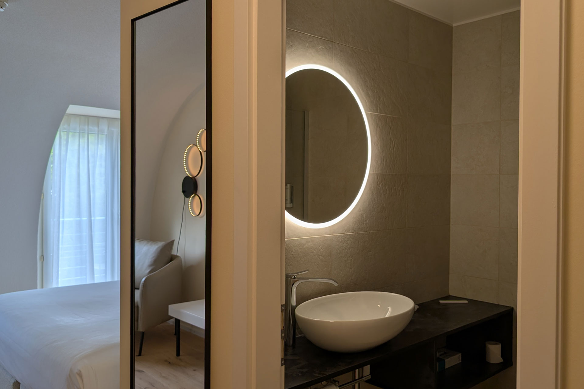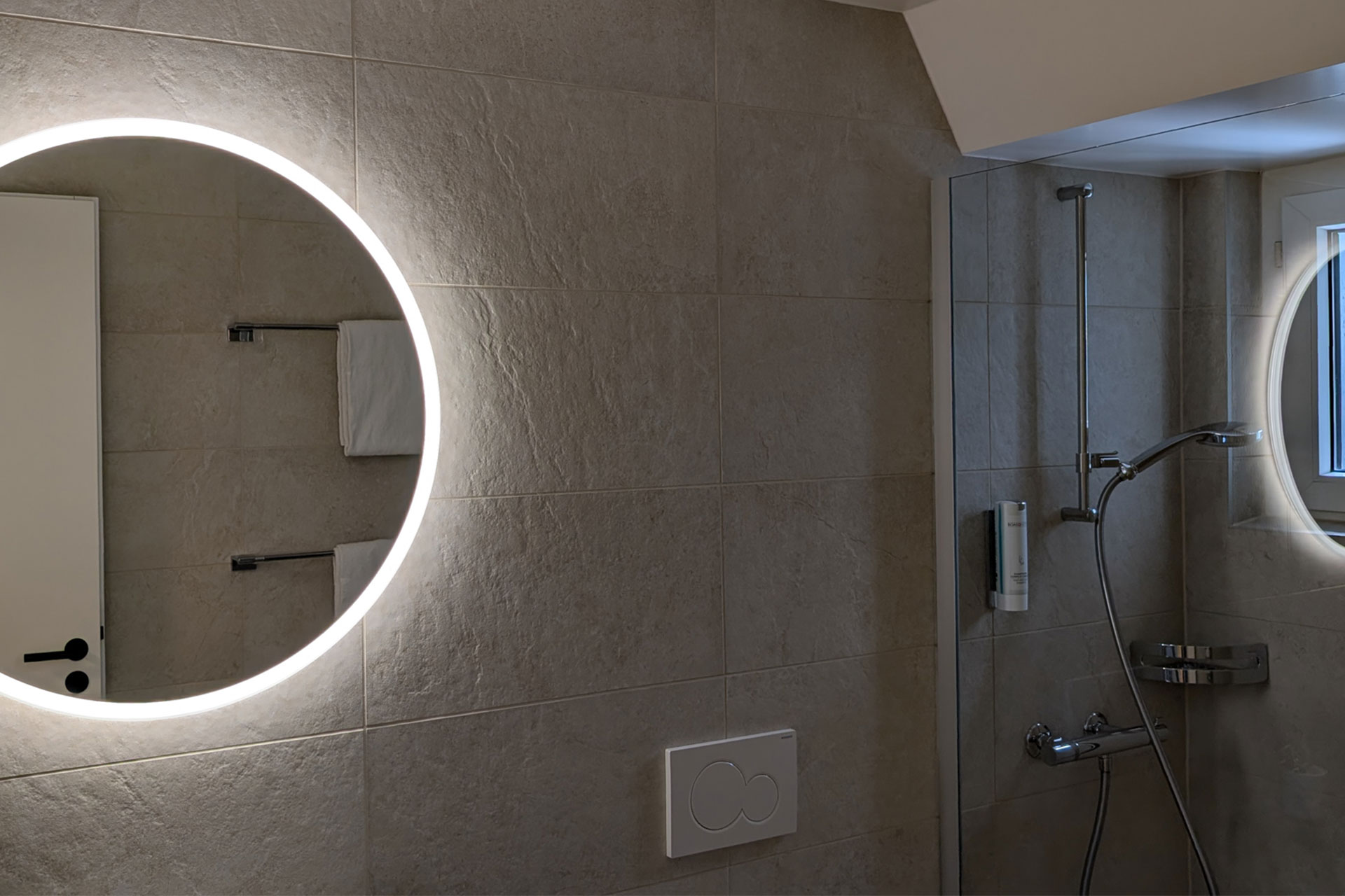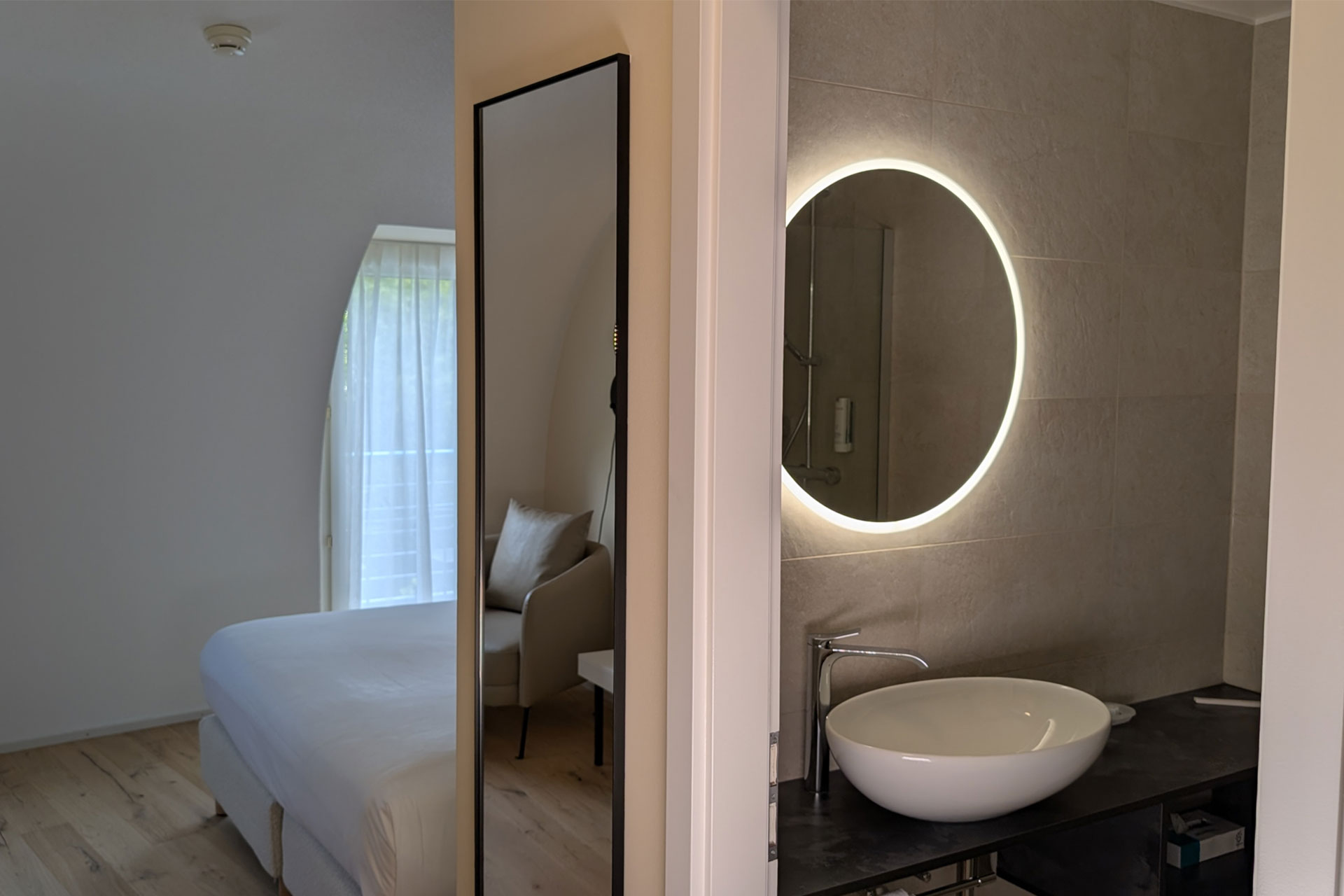 « Avec les miroirs lumineux Schneider GLOW LED, nous avons trouvé le parfait équilibre entre élégance, confort et technologie. Leur design sobre, leur lumière agréable à 4000 Kelvin et leur finition de qualité s’intègrent parfaitement dans nos chambres rénovées. Nos clients le remarquent et l’apprécient. »