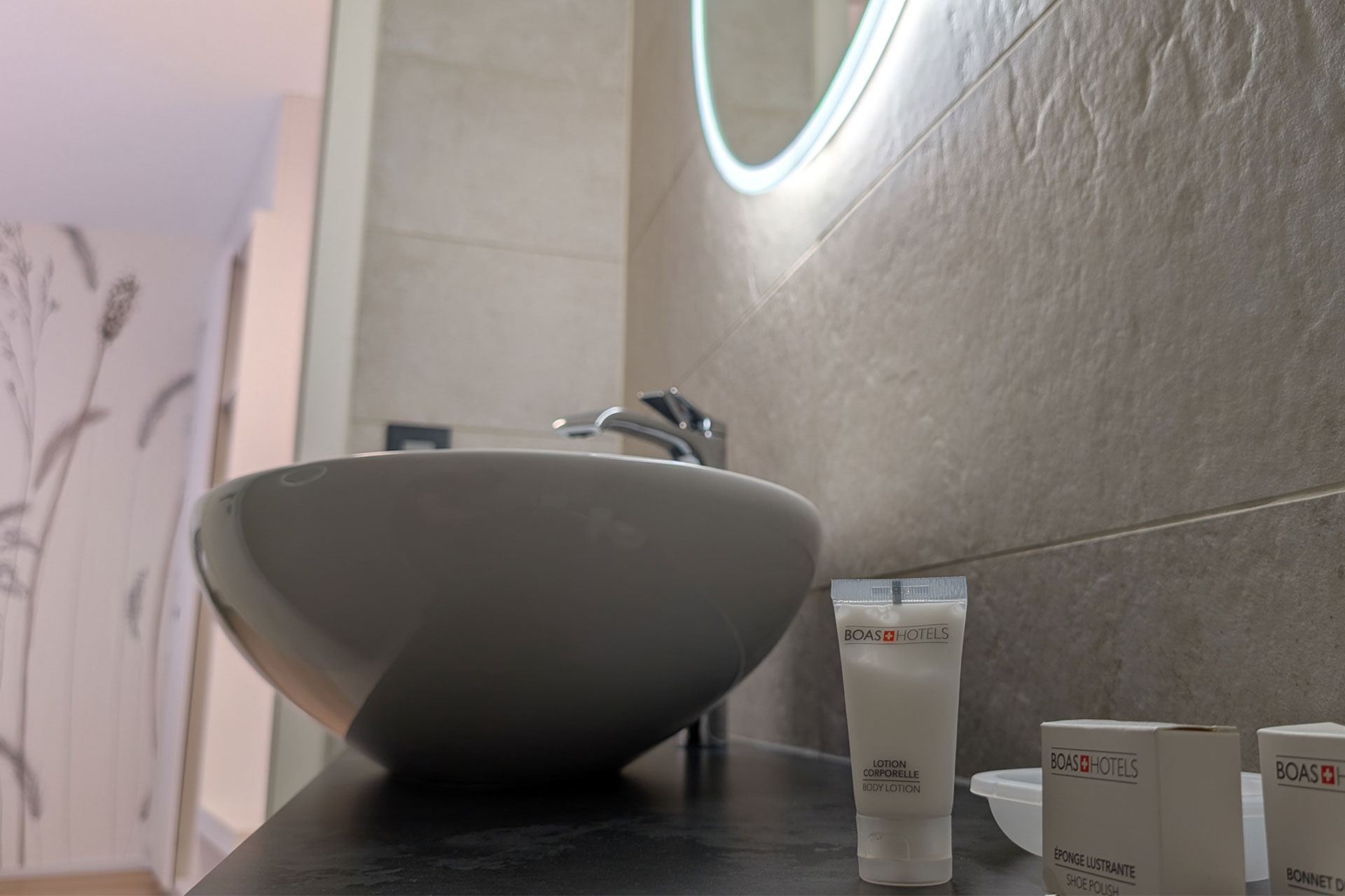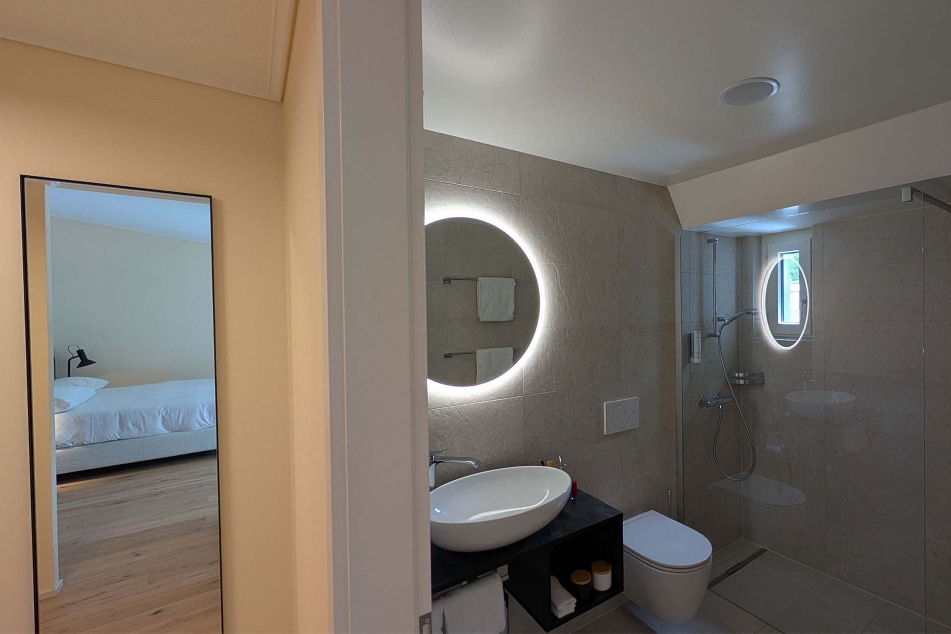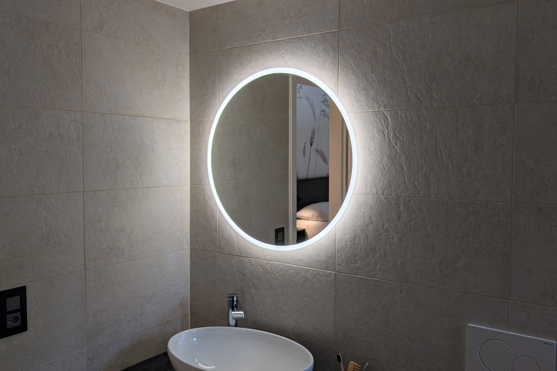 Élégant miroir lumineux Schneider GLOW LED au Grand Hôtel d’Yverdon-les-Bains