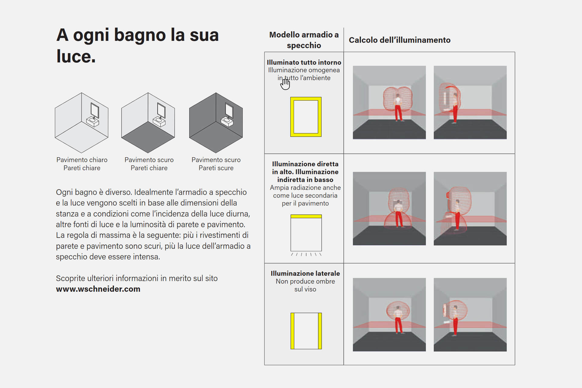 - I modelli Easy-Line di Schneider comprendono armadietti per specchi di alta qualità con illuminazione LED a 3000 Kelvin (bianco caldo) o 4000 Kelvin (bianco neutro)