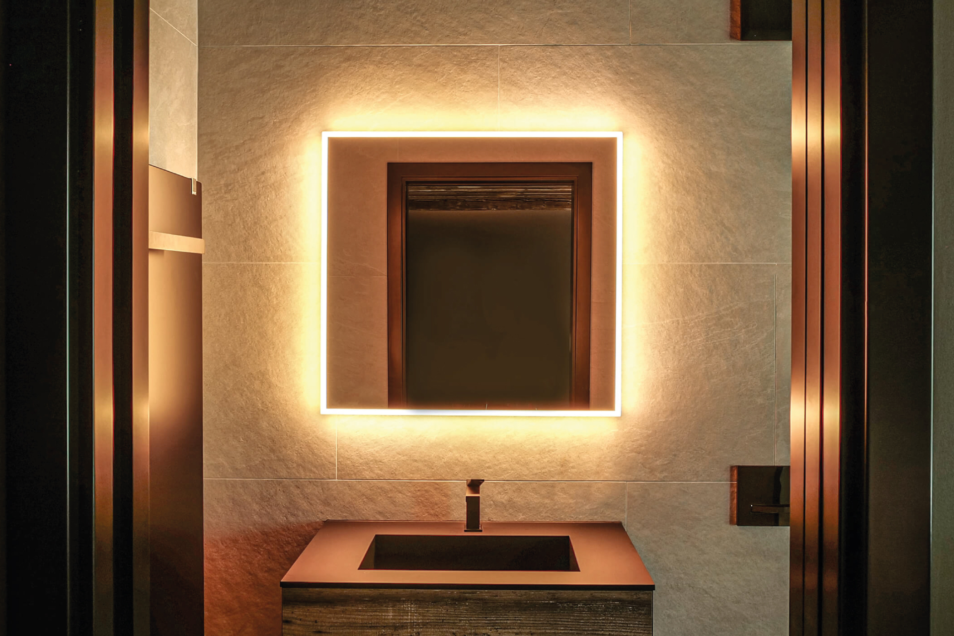 Adaptable lighting – from minimal lighting for orienting at night to make-up lighting in the morning. - Dimmable