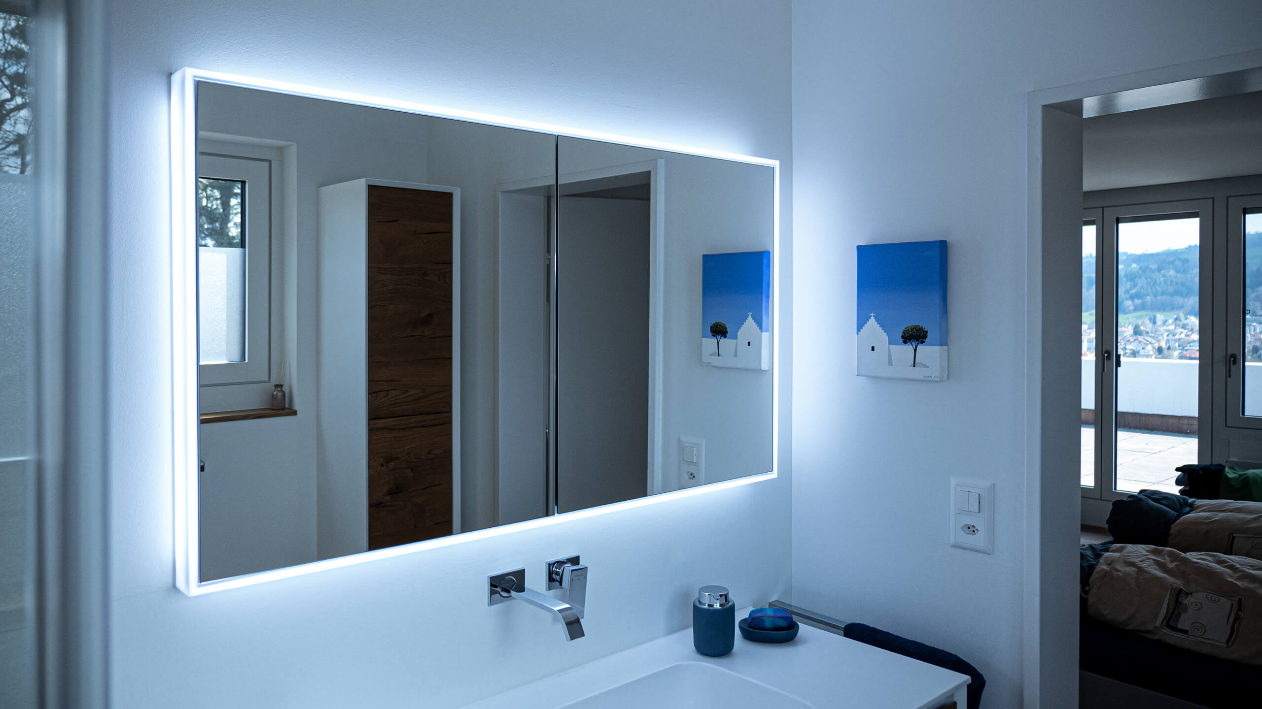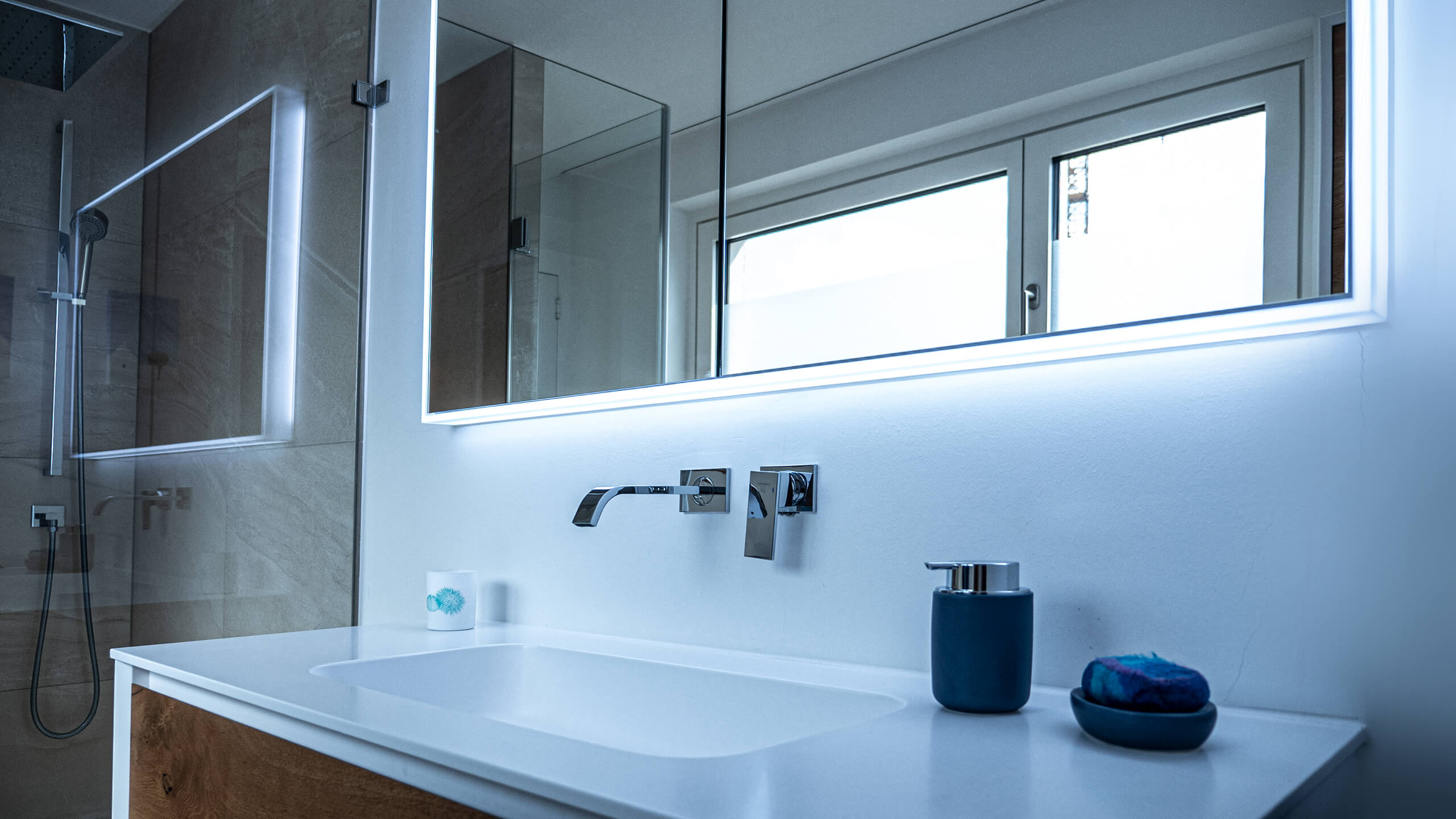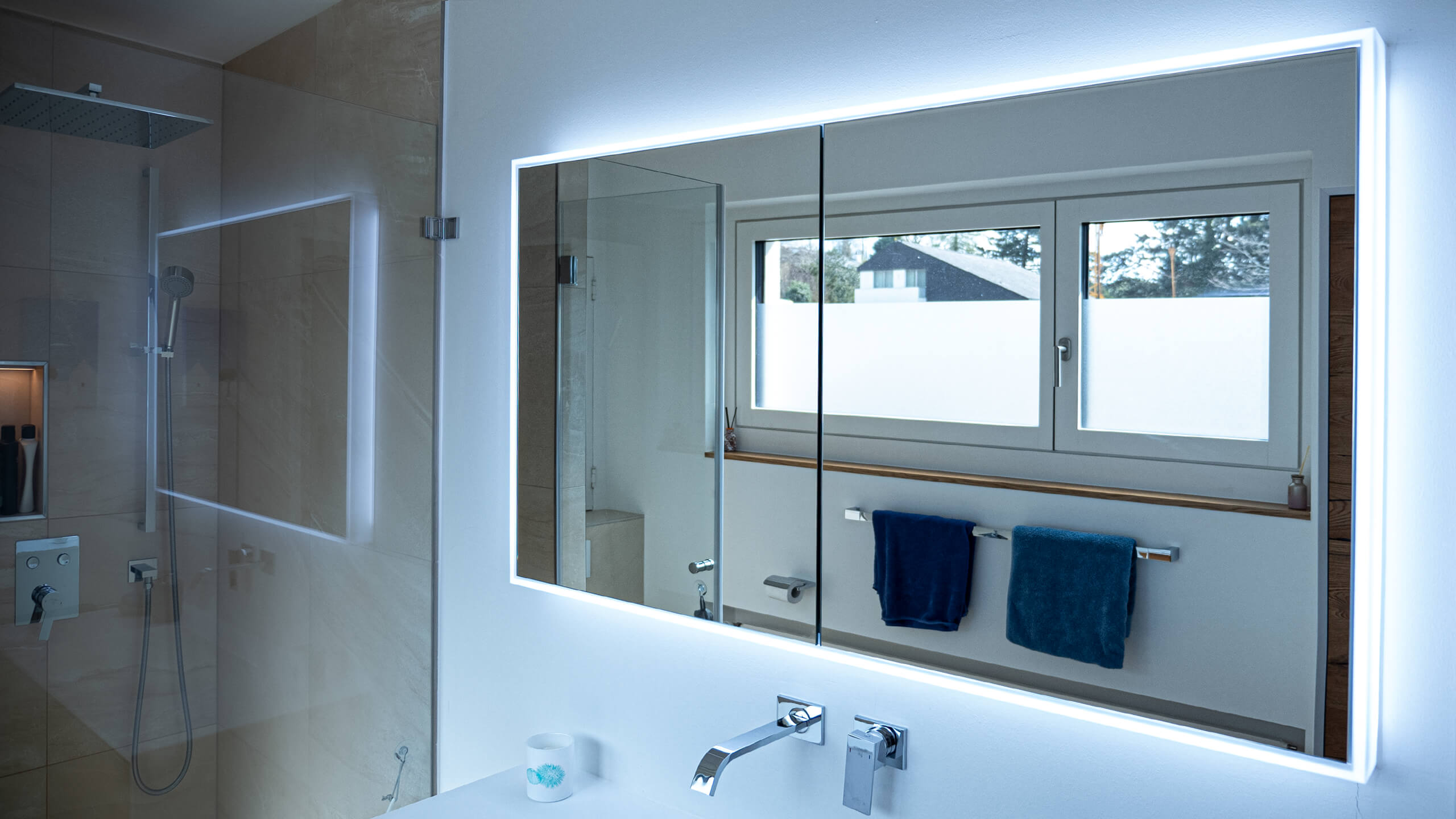 he shower in this house is equipped with our Schneider GLOW classic HCL mirror cabinet.